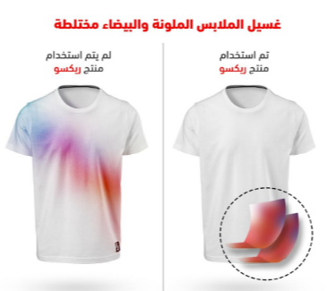 حتى مع منتجات ريكسو التي تحافظ على الألوان، يُفضل غسل الملابس البيضاء والملونة على حدة لتجنب انتقال الألوان.